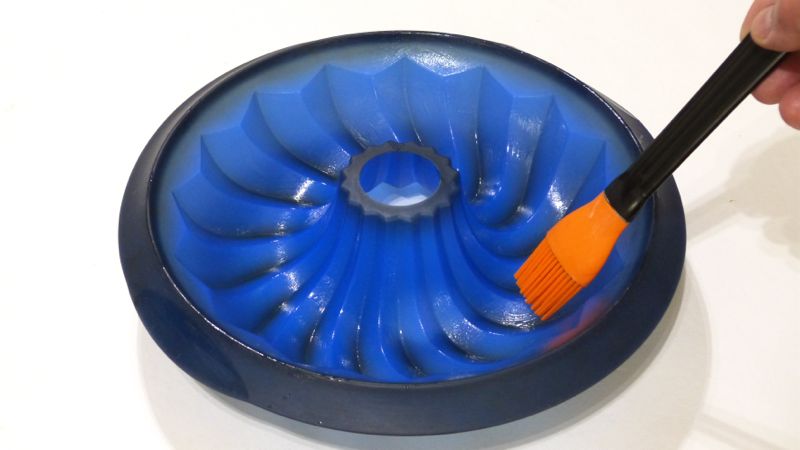 S'agafa un motllo (millor si pot ser de silicona), s'hi posa molt poca mantega i s'escalfa al forn fins que es fongui, amb un pinzell es pinta i es posa a la nevera per a què es refredi. El posarem al revés per a què les restes de mantega no quedin al fons. Cada gota de mantega que ens hi quedi serà un forat.
